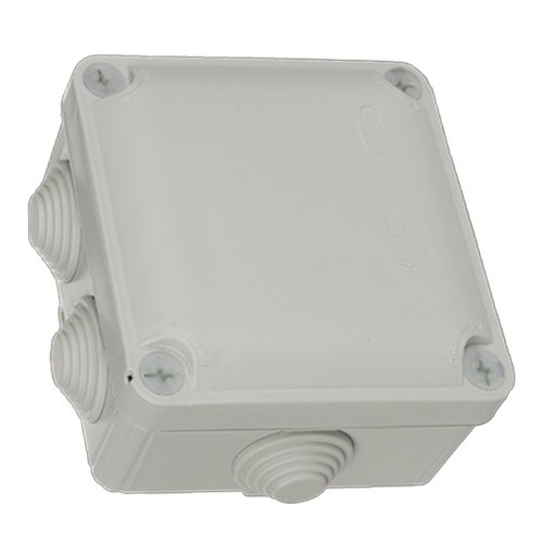 Caja estanca de conexión con conos. Color gris.IP55. IK08. Dimensiones interiores 110 x 110 x 55 mm. Cierre con tornillos 1/4 de vuelta. Con 7 conos para tubo Ø 25 mm Lee mas