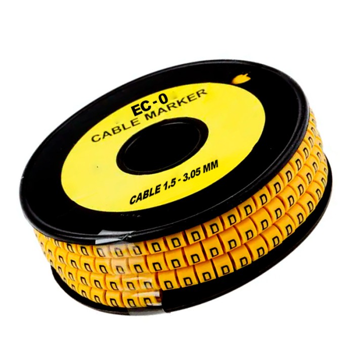 Este es un componente específico de ese sistema: un marcador de tipo aro, LETRA (D), amarillo, para cables de 1.5-3.05mm de diámetro. Es una solución práctica y eficiente para la identificación de cables dentro de un sistema mayor.