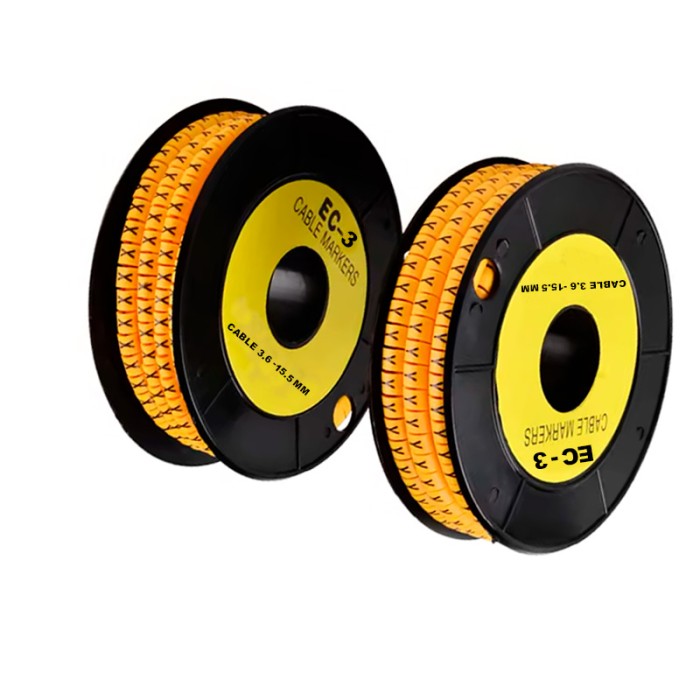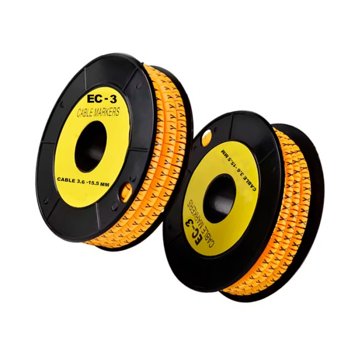 Marcador aro EC-3 letra Y, color amarillo, para cables de 3.6–15.5 mm. Rollo x 350 unidades. Lee mas
