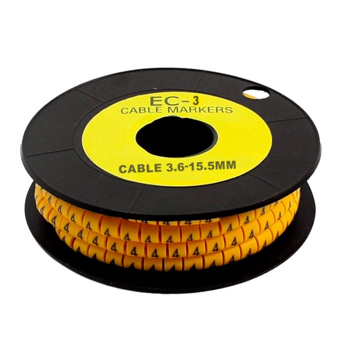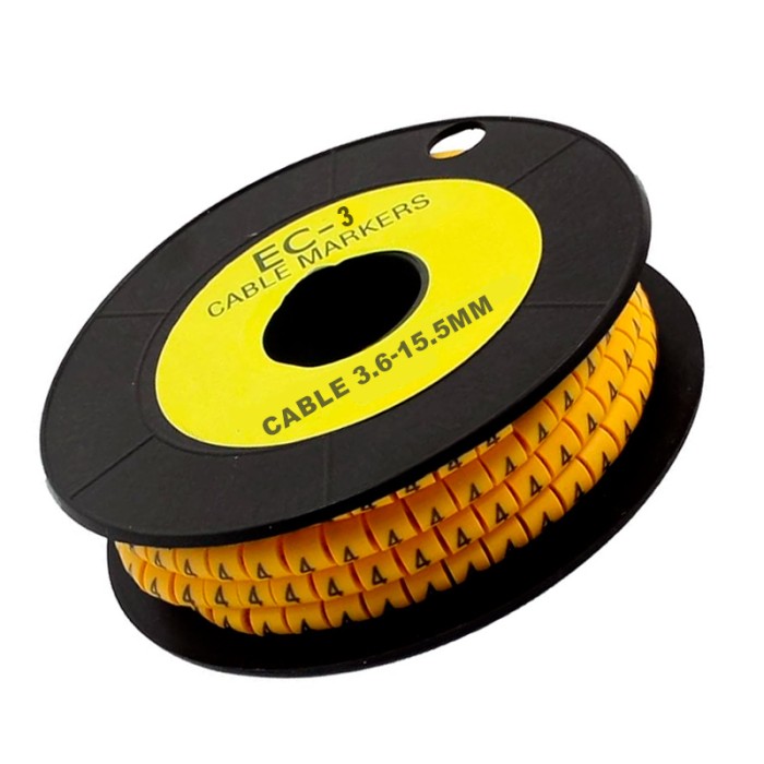 Marcador aro EC-3 número 7, amarillo, para cables de 3.6–15.5 mm. Rollo x 350 unidades. Lee mas