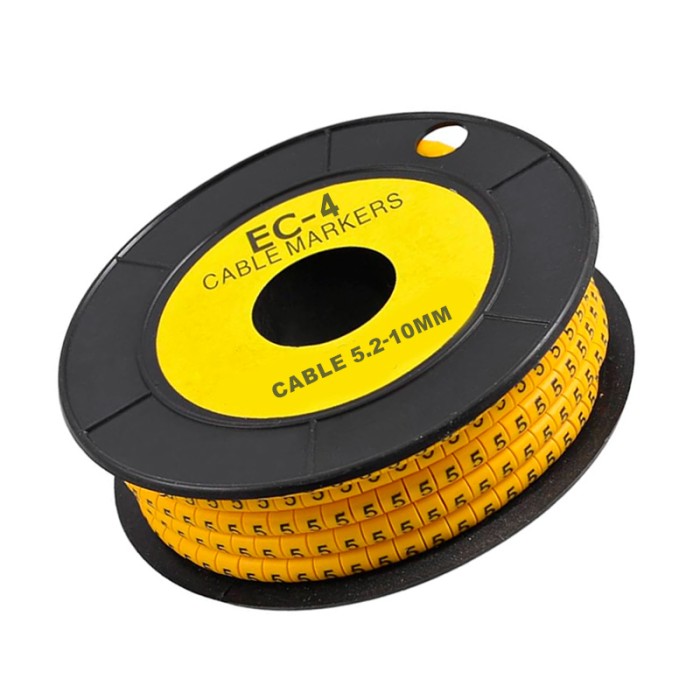 Marcador aro EC-4 NUMERO (2), amarillo, para cables de 5.2–10 mm. Rollo x 250 unidades. Lee mas