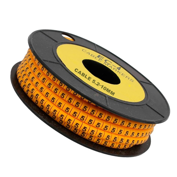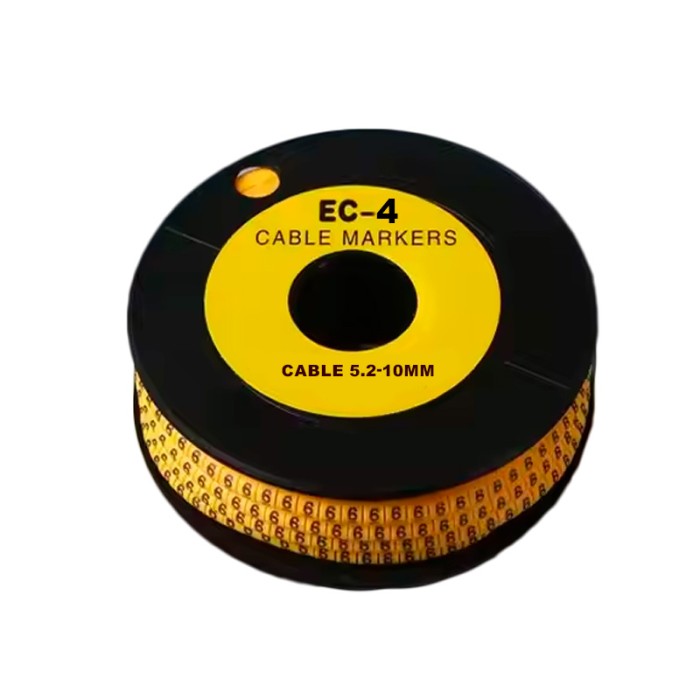 Marcador aro EC-4 NUMERO (4), amarillo, para cables de 5.2–10 mm. Rollo x 250 unidades. Lee mas