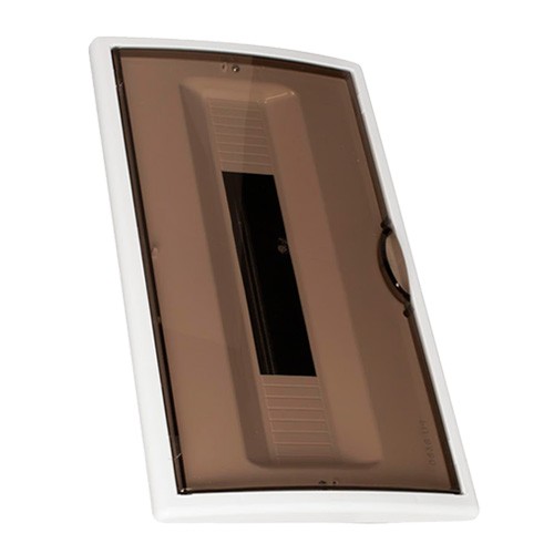 Caja de distribución de superficie de 18 elementos.Caja y marco blancos y puerta fumé.Dimensiones exteriores 407 x 247 x 104 mm. Aplicaciones habituales: Entorno domestico/terciario interior (Interior de vivienda, oficinas, comercios, etc..) Lee mas