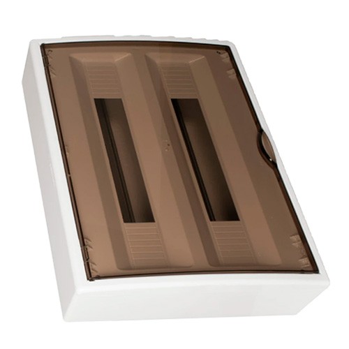 Cuadro de distribución de superficie, 36+4 módulos. Puerta de humos. 2 filas. Caja y marco blancos. Dimensiones exteriores: 423 x 353 x 104 mm. Aplicaciones comunes: Interiores domésticos/terciarios (interiores de viviendas, oficinas, comercios, etc.). Lee mas