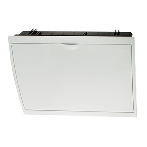Caja de distribución de empotrar de 42 elementos.3 filas. Marco y puerta blancos. Dimensiones para empotrar 360 x 528 x 86 mm. Aplicaciones habituales: Entorno domestico/terciario interior (Interior de vivienda, oficinas, comercios, etc..) Lee mas