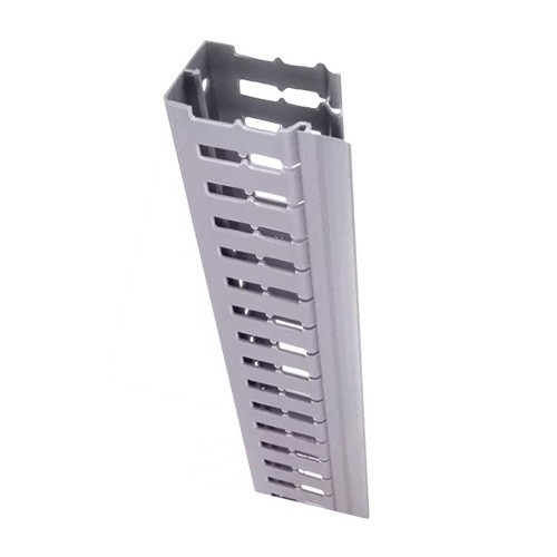 Consta de cubierta y fondo, presenta orificios paralelos en ambas paredes laterales para facilitar el corte de la aplicación del alambre.