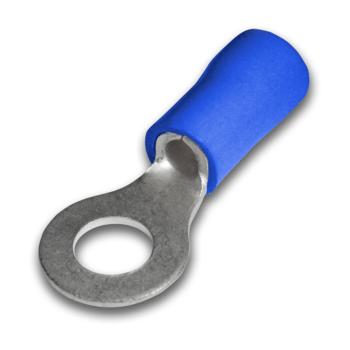 Terminal tipo anillo para conectar cables eléctricos o aparatos electrónicos. Permite aislar el cable del metal mediante el plástico que posee, así mismo resiste altas temperaturas. Ideal para cable 22-16 AWG.
