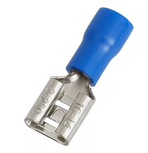 El terminal preaislado hembra es una pieza que se utiliza para terminar los conductores, con una cubierta de plástico para aislar la región donde el conductor está conectado al terminal. Está fabricado en cobre electrolítico, con un acabado estañado, lo que le confiere una alta conductividad eléctrica y resistencia a la corrosión. Se puede aplicar a paneles eléctricos, conexiones de motores, máquinas, cuadros de distribución eléctrica, entre otros.
