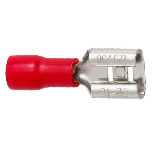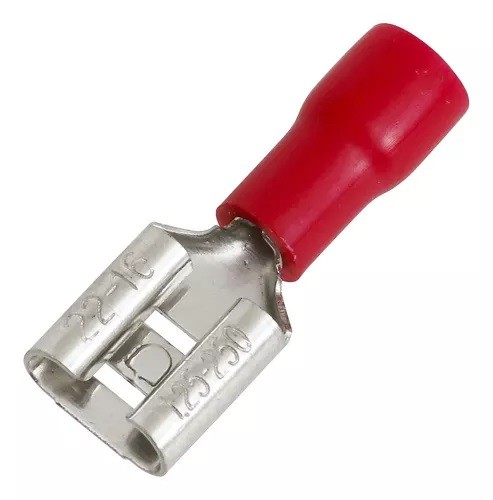 El terminal preaislado hembra es una pieza que se utiliza para terminar los conductores, con una cubierta de plástico para aislar la región donde el conductor está conectado al terminal. Está fabricado en cobre electrolítico, con un acabado estañado, lo que le confiere una alta conductividad eléctrica y resistencia a la corrosión. Se puede aplicar a paneles eléctricos, conexiones de motores, máquinas, cuadros de distribución eléctrica, entre otros.
