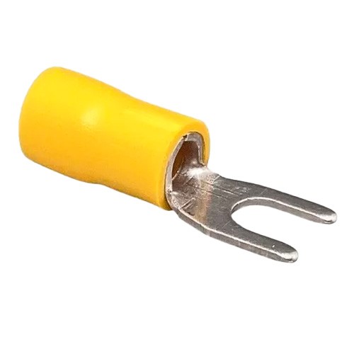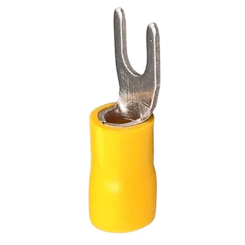Terminal tipo horquilla (uña) sirve para conectar cables eléctricos o aparatos electrónicos. Permite aislar el cable del metal mediante el plástico que posee, así mismo resiste altas temperaturas. Ideal para cable 22-16 AWG.