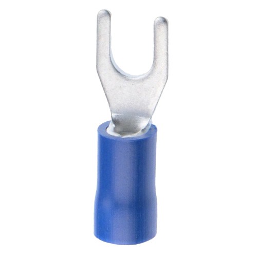 Terminal tipo horquilla (uña) sirve para conectar cables eléctricos o aparatos electrónicos. Permite aislar el cable del metal mediante el plástico que posee, así mismo resiste altas temperaturas. Ideal para cable 22-16 AWG.